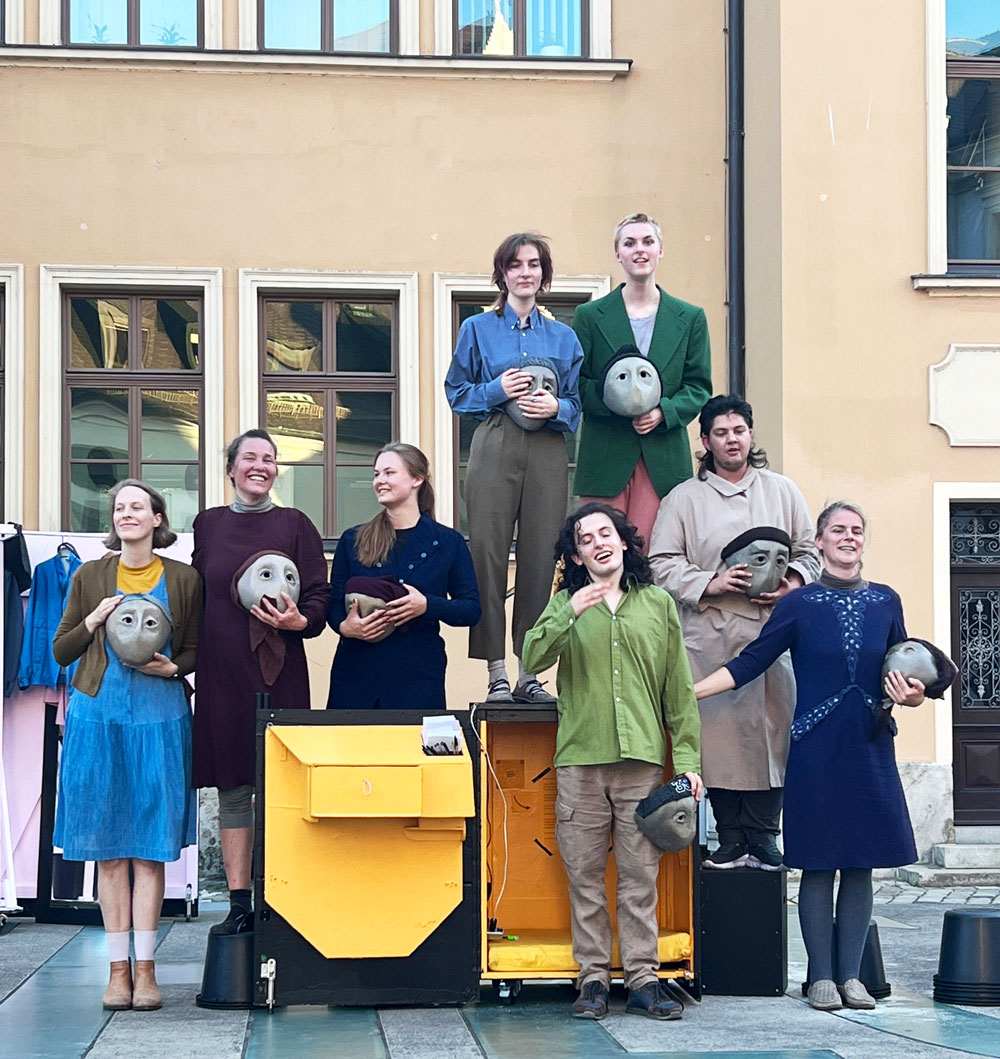 Zwischen März und September 2021 kreieren wir 5 Interventionen an 5 verschiedenen Orten in Detmold. Wir greifen auf unterschiedliche Kunstrichtungen zurück, um den öffentlichen Raum zu befragen. Maskenspiel, Tanz, Mime, Improvisation, Soundcollage, Installation, Street-Art. Die Detmolder Bevölkerung wird in ihrem Alltag mit diesen Interventionen konfrontiert, ihre alltäglichen Vorgänge werden befragt.