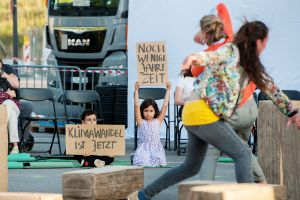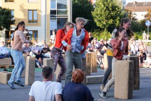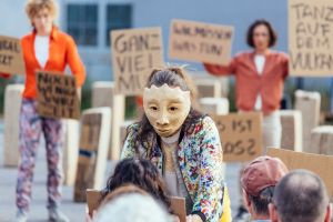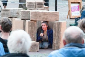 Mit einer rituellen Performance auf dem Marktplatz bahnt TheatreFragile einen Weg aus dieser widersprüchlichen Position: Mit Gesang, Tanz, physischem Theater und Maskenspiel laden 5 DarstellerInnen das Publikum ein, Leugnung, Wut, Verhandlung, Trauer und Akzeptanz zu durchleben.